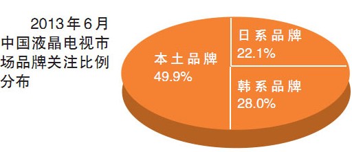 日前,国内第三方调研机构ZDC发布6月中国液晶电视市场分析报告。数据显示,6月,国内液晶电视市场上依旧保持着三足鼎立的品牌关注格局,其中日韩系品牌的关注比例分别为22.1%、28.0%,而本土品牌以49.9%的关注比例占据半壁江山。