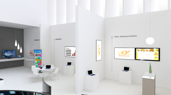 三星电子在拉斯维加斯2014国际CES展会上推出了众多全新的商用大屏幕显示器产品(LFDs),展示了多种应用于酒店、商用和零售业的创新LFD解决方案,为客户带来了全新的视觉震撼和差异化的体验。为了全方位展示在各种应用环境下的优势,CES的三星展区结合了三星“互动白板”和世界上最大的95英寸LED LFD,模拟各类应用环境场景,再现了一个充满艺术气息的“酒店天堂”,包括酒店大堂视频墙、全新的酒店电视解决方案及商务中心显示解决方案。