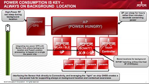 在CITE2014同期举行的新技术发布会上,博通移动和无线集团GPS部门业务拓展总监Jerry Wang介绍了这款创新方案的几大优势特性: