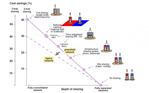 图1,由移动网络共享获得的成本下降(来源:Vodafone)