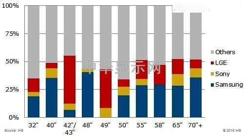 IHS DisplaySearch预测,前三大电视品牌厂商2015年LCD TV出货量将比去年成长16%,达到1亿1,000万台,同时面板需求量将占总供应量的42%;该机构面板供应链研究总监Deborah Yang表示:“根据较为乐观的出货目标观察,今年前三大电视品牌──三星、LGE和索尼的电视面板供应控制优势将更加明显,这将对小规模竞争厂商带来更多压力。因为这三大领先的电视厂商势必将对今年的全球面板供应带来更大影响,因此面板厂商一定将其列为第一优先级客户,最先满足它们的需求。”