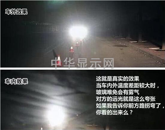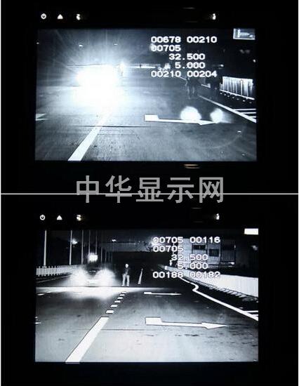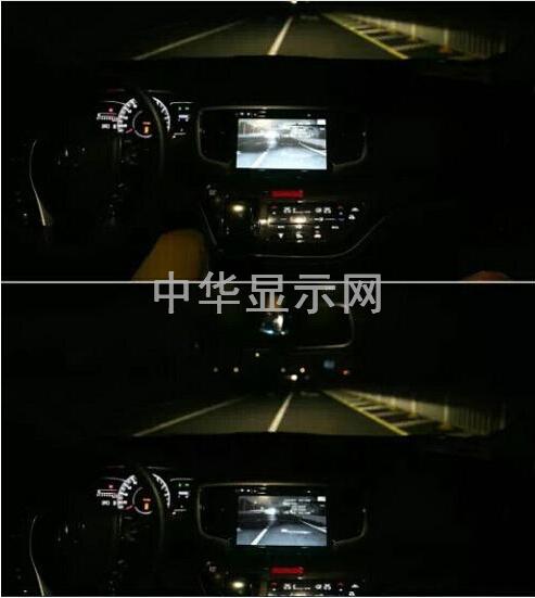保千里汽车夜视安全系统眩光屏蔽功能开启前(图上)、后效果对比图