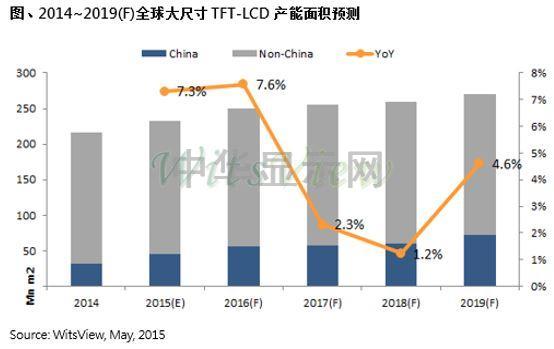 TrendForce旗下光电事业处WitsView最新报告显示,全球大尺寸液晶面板产能供货商包括京东方、华星光电以及中电熊猫都将在第二季开始陆续量产新8.5代线,2015年大尺寸液晶面板可投入产能预计将达到2.32亿平方公尺,较2014年增长7.3%。WitsView资深研究经理范博毓表示,中国厂商并不以此为满足,未来3~4年仍有潜在的新产能陆续规划中,预计到2019年大尺寸液晶面板投入产能有机会上调至2.7亿平方公尺。