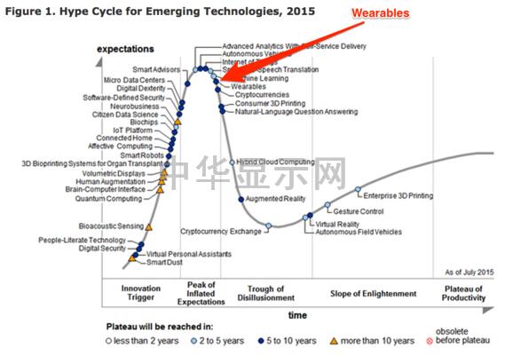 市场研究机构Gartner针对新兴技术发布的《Hype Cycle》年度报告称,消费者对于可穿戴设备的热情将滑向令人心寒的幻觉破灭期。