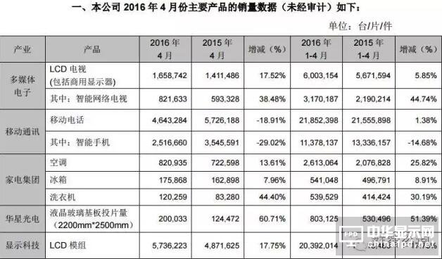 华映4月大尺寸TFT出货片数为4.3万片,较3月减少41.5%,并较2015年同期大幅减少60.8%。华映4月中小尺寸出货量为3,182万片,较3月中小尺寸出货片数3,388万片,减少6.1%,并较2015年同期减少10.5%。