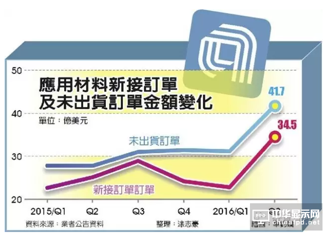 应用材料受惠于面板客户大举扩充OLED面板产能,3D NAND闪存制程需采用新设备,加上大陆面板及半导体厂积极扩充产能,会计年度第二季新接订单冲上34.5亿美元,较上季大幅增加52%,与去年同期相较亦大增37%,创下15年来新高纪录。