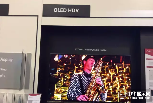 LGD展示了77英寸OLED TV屏幕,与此前展示的OLEDTV不同,该款产品搭载HDR功能。其屏幕像素为3840*2160。