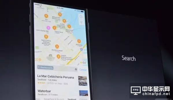 第五关于地图功能。地图功能会先用户一步,推荐用户可能想要去的地方;同时,导航界面更加简洁,也加入了实时路况信息;新的地图功能将整合进Carplay系统。同时,与服务相连,通过地图应用,和Open Table 查找餐馆,用UBER叫车,用Apple Pay 付钱。这些服务都将向第三方开发者开放。