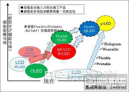 通过聆听本届SID上的众多演讲,笔者按照自己的印象,绘制了各项技术所瞄准的定位(显示器价值)。