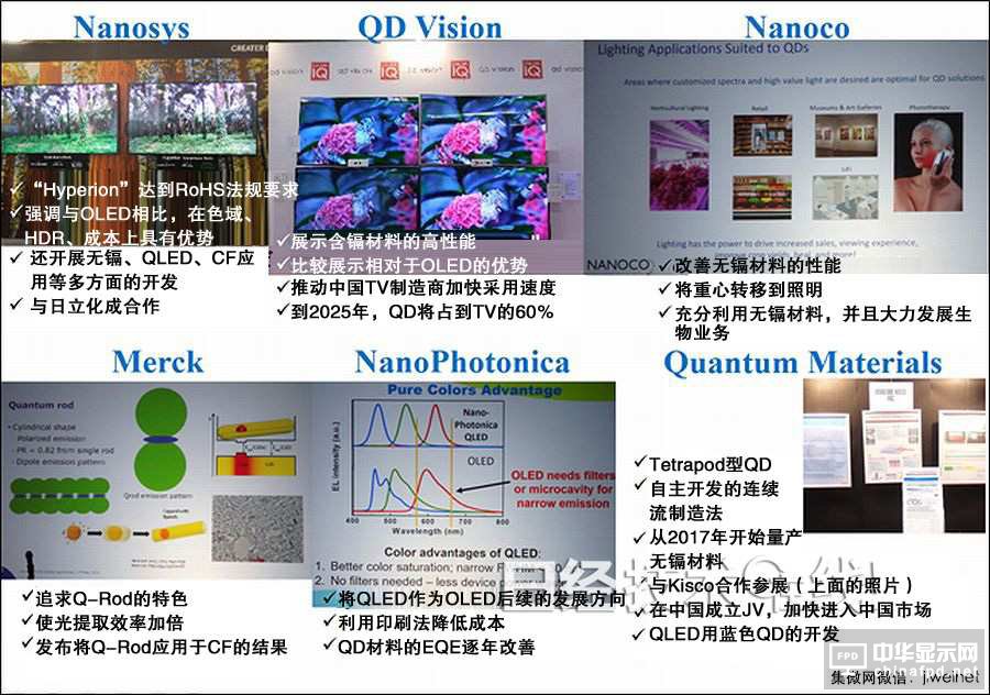 图3:各量子点制造商在SID 2016的展示和演讲中宣传的重点