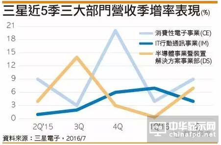 IM部门主要由Galaxy S7与S7 Edge销售带动业绩攀升,S7 Edge的销售比重也提高到S7系列的50%左右;Galaxy A与Galaxy J等中低价位智能型手机的获利性维持与前季类似水平,也为第2季业绩改善带来帮助