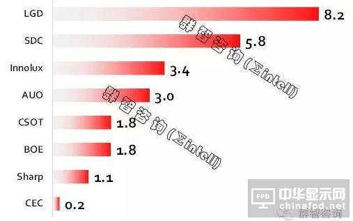 2016年上半年全球4K液晶电视面板排行榜(单位:Mil pcs)