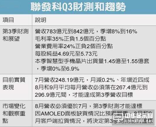 联发科7月合并营收248.19亿元,代表8月和9月平均每月营收落在267.4亿元到296.9亿元间。法人认为,联发科本季营收趋近低标的可能性高。