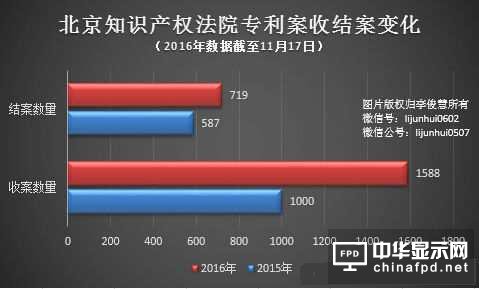 而2015年,北京知识产权法院的专利纠纷收案数量约1000件,而结案数量为587件。