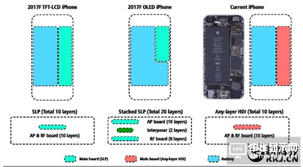 此外,郭明池还透露,iPhone 8将使用OLED屏,由于手机采用堆叠式PCB主板,所以电池容量被加大了。