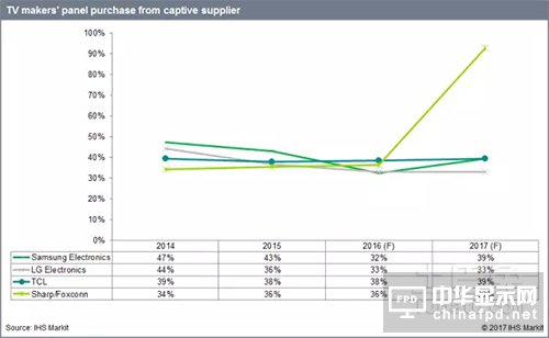 进入2017年,对于面板供应将继续紧张的忧虑依然持续,多数的彩电品牌制造商对未来是否能够获得稳定的面板供应仍然感到不安。此外, 鸿海集团在2016年收购夏普,之后便決定在2017年停止向三星电子供应电视面板,此举动造成了供应链震荡以及关系的改变,这也加深了相关企业的担忧。