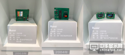 在CITE2017展台,维信诺首次公开集中展示了一系列历史产品。它们是维信诺自1996年开始研发出的多款具有划时代意义的产品,比如中国大陆第一款全彩PMOLED显示屏、中国大陆第一款区域多色彩屏……