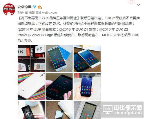 现在,不少网友在微博上发出了ZUK再见的消息,大意就是ZUK被联想抛弃,这个三年的品牌不会再有新品。虽然成立三年ZUK手机销量并不算大,但跟老迈的联想相比,真的是走出了一条不一样的路,也拥有众多玩家支持。