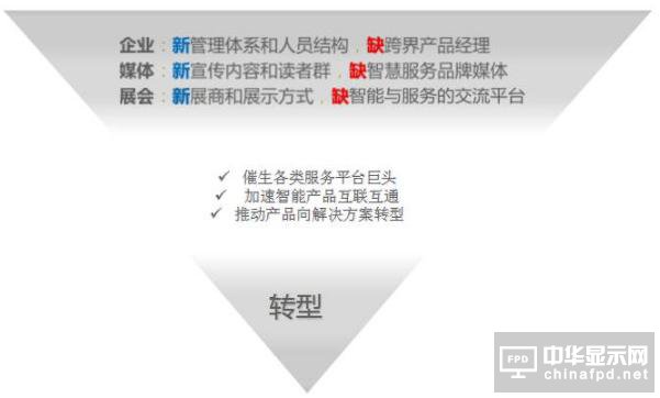 以展会为例,当前各种展会大多以商品交易和客户拓展为核心目的,而在智慧生活服务的推动下,挑选具备服务势能的生态合作伙伴,将是企业新渠道的构建方式。因此急需新的展会组织和展示方式,即在生态链完整的展会中,让合作伙伴主动找到自己。思锐达咨询在调研中发现几个大型的展会开始有转型的趋势,如安博会、AWE、CSHE等拉通了从技术、产品、平台、服务的链条。特别是2018年CSHE智慧家庭博览会规划了智慧公寓、智慧家庭、智慧社区、智慧酒店等多个展示区域,核心展示内容为智慧服务运营相关的解决方案。