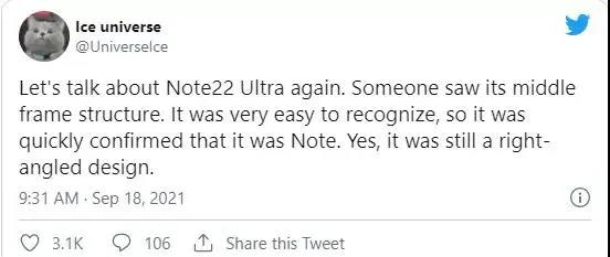 据报道,三星 Galaxy Note 22将采用Note 系列的典型方形设计,而不是 Galaxy S系列的圆角设计。
