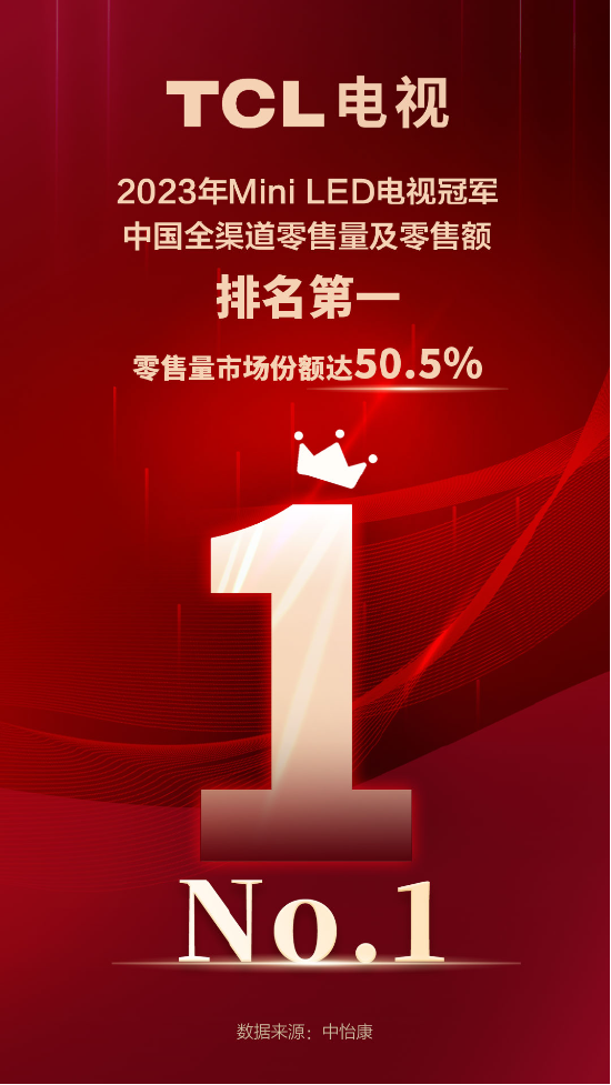 2023年,TCL品牌电视保持全球领先地位,TCL品牌电视以2526万台的全球电视销量,连续两年成为全球第二的电视品牌。其中,98英寸超大尺寸电视销量位居全球第一;此外,TCL空调出货量位列全球前四。