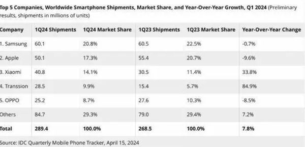 近年来,小米手机在全球市场表现强劲,出货量持续稳居前五。据Canalys与IDC发布的2024年一季度数据,小米紧随三星、苹果之后,位居第三。展望二季度,小米出货量预期将显著增长。据CNMO了解,有博主发文称,预计小米二季度全球出货量将超过4000万台,同比增幅超过20%,较去年同期的3320万台有显著提升。