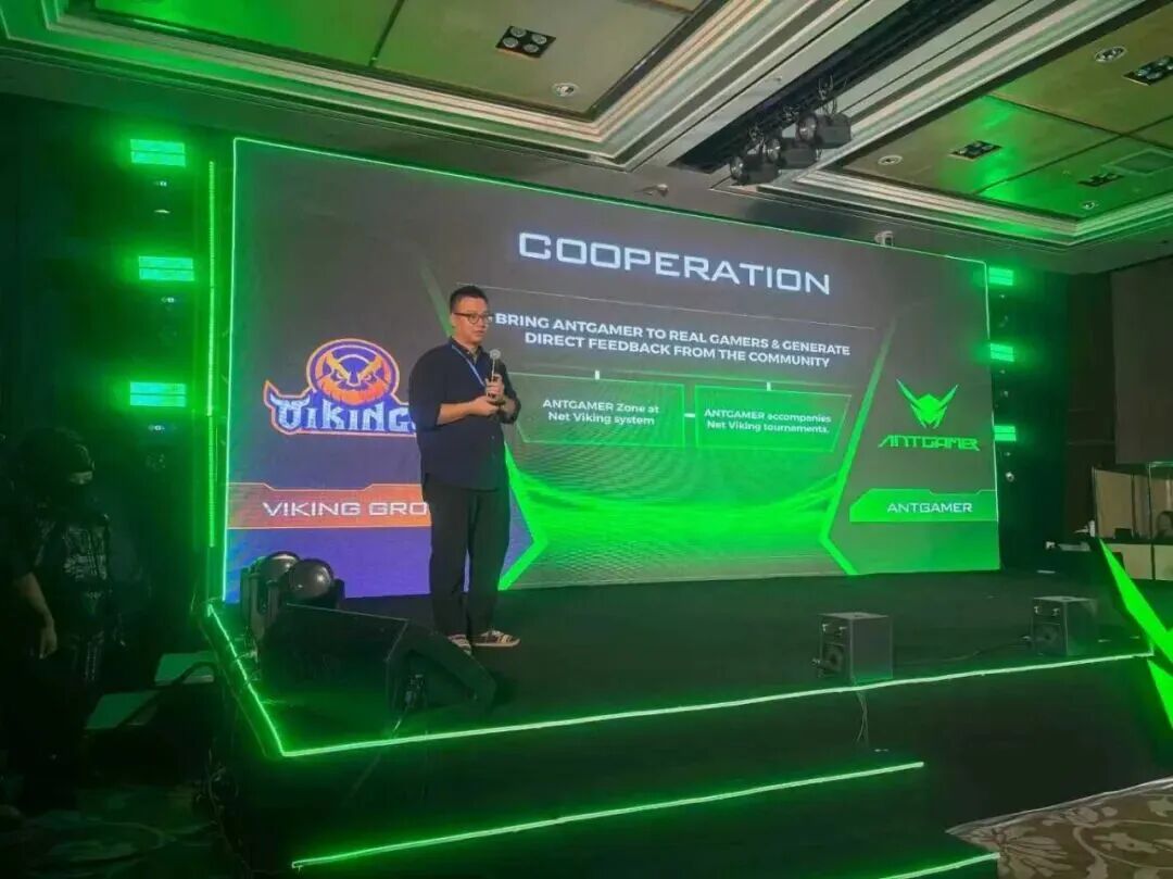 发布会现场,蚂蚁电竞ANTGAMER国际业务代表沈杨与李宏超先生率先向到场的合作伙伴、媒体机构及越南电竞界人士致谢,感谢各方对品牌海外拓展的支持与陪伴。