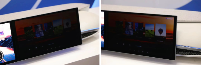 LG Display还首次展示了一种将可滑动OLED显示屏应用于前仪表板的新概念。利用塑料OLED(P-OLED)——薄、灵活的优势,并提供超高的图像质量,部分显示器可以以30R的曲率(半径为3cm的圆)滚动,并隐藏在仪表板内。驾驶员可以在驾驶时使用它进行导航和其他功能,然后在停车或自动驾驶时将其扩展到33英寸的显示屏。