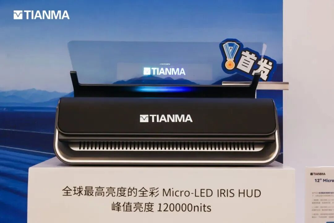 12英寸Micro-LED高亮IRIS HUD,作为全球最高亮度的全彩Micro-LED IRIS HUD,最高亮度大于120000nits,强光下行车信息依然清晰可见。该产品还拥有超高画质表现,相比传统LCD方案,具备更广色域、更高对比度与更快响应速度,视效更沉浸、体验更流畅;整体轻薄紧凑,无背光模组设计使其厚度仅2mm,为整车布局释放更多空间,散热直接贴合TFT玻璃,散热高效、性能稳定;同时采用前档玻璃全透明设计,无底部黑油遮挡,视野开阔,为未来智能座舱提供创新显示解决方案。