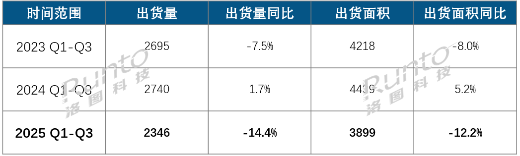 数据来源:洛图科技(RUNTO),单位:千片,千平方米,%
