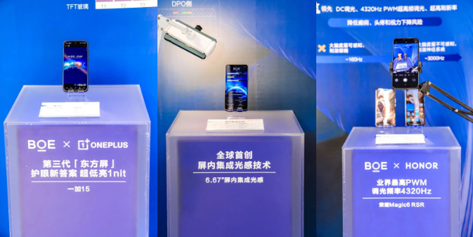 一加15搭载京东方第三代东方屏,实现1nit超低亮暗夜显示;荣耀Magic6 RSR采用超高频4320Hz PWM调光,能减少频闪对眼睛的刺激,缓解视觉疲劳,获得了TÜV莱茵无频闪认证。